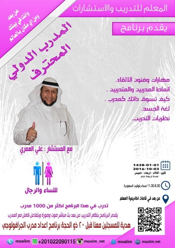 سجل معنا قبل 20-12-1437هـ واحصل على هدية برنامج اعداد مدرب تحليل الشخصية بواسطة الخط (الجرافولوجي)